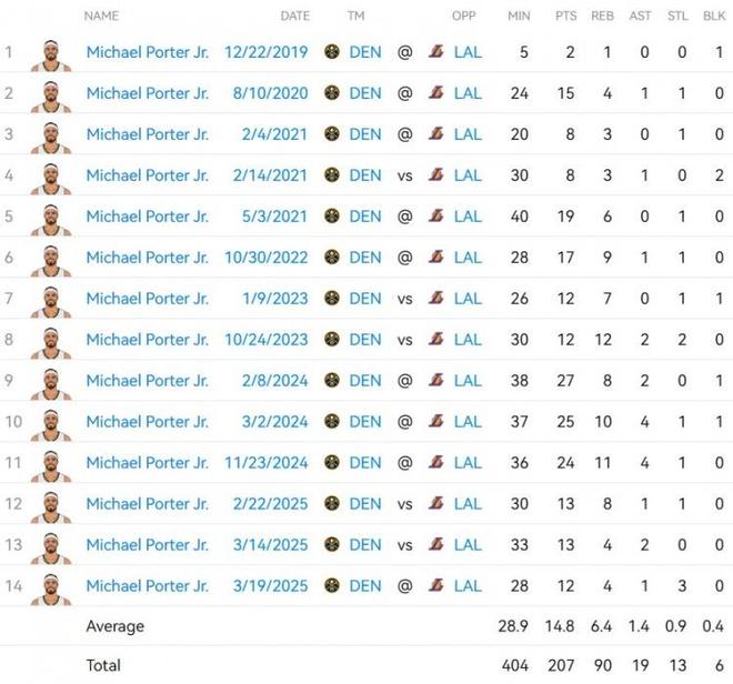 不过,小波特在效力掘金期间曾经多次和湖人交手,保持了较高的竞技水准。