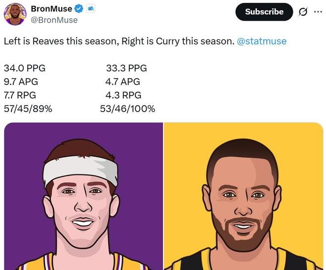按照里夫斯目前的表现,他完全有资格拿到这样一份肥约,新赛季至今里夫斯场均拿下34分7.7板9.7助,真实命中率高达73.6%,三分命中率45%,无论是产量,还是效率都与库里十分接近。